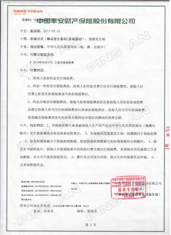 中國平安保險質量全程承保防雷產品